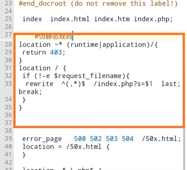 rewrite ^(.*)$ /index.php?s=$1 last; break;