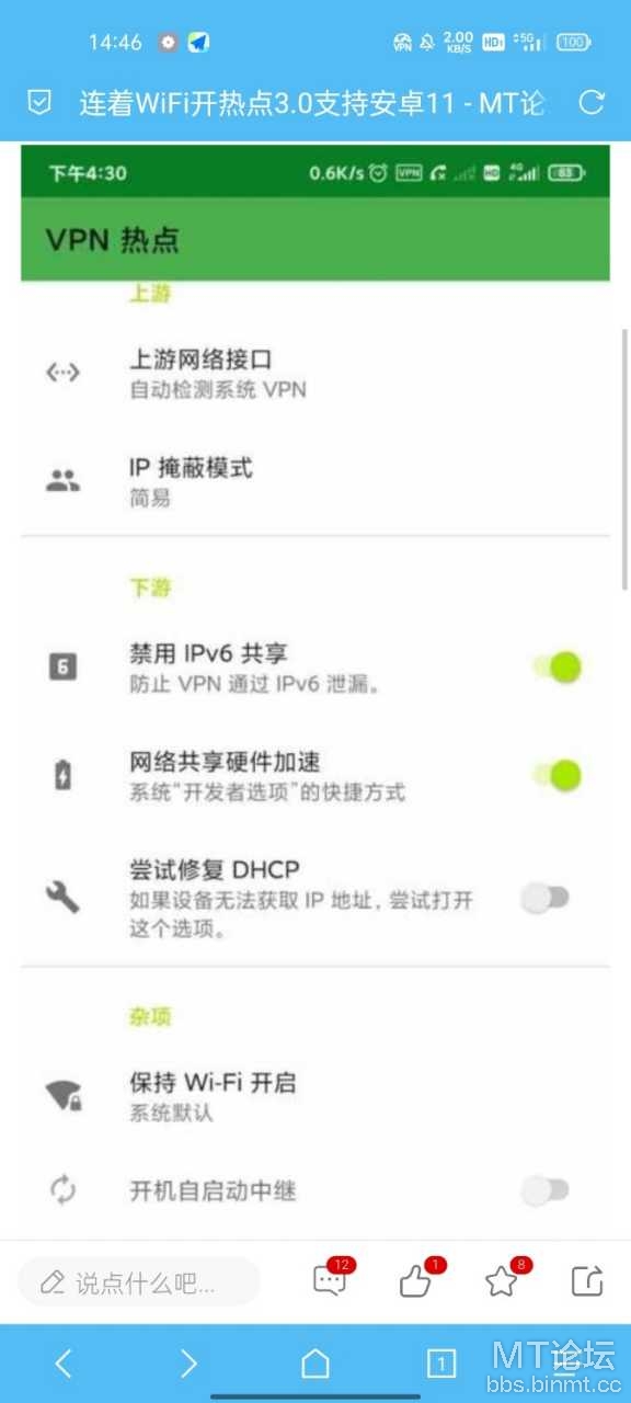 开热点同时开wifi软件,开VPN同时开热点APP